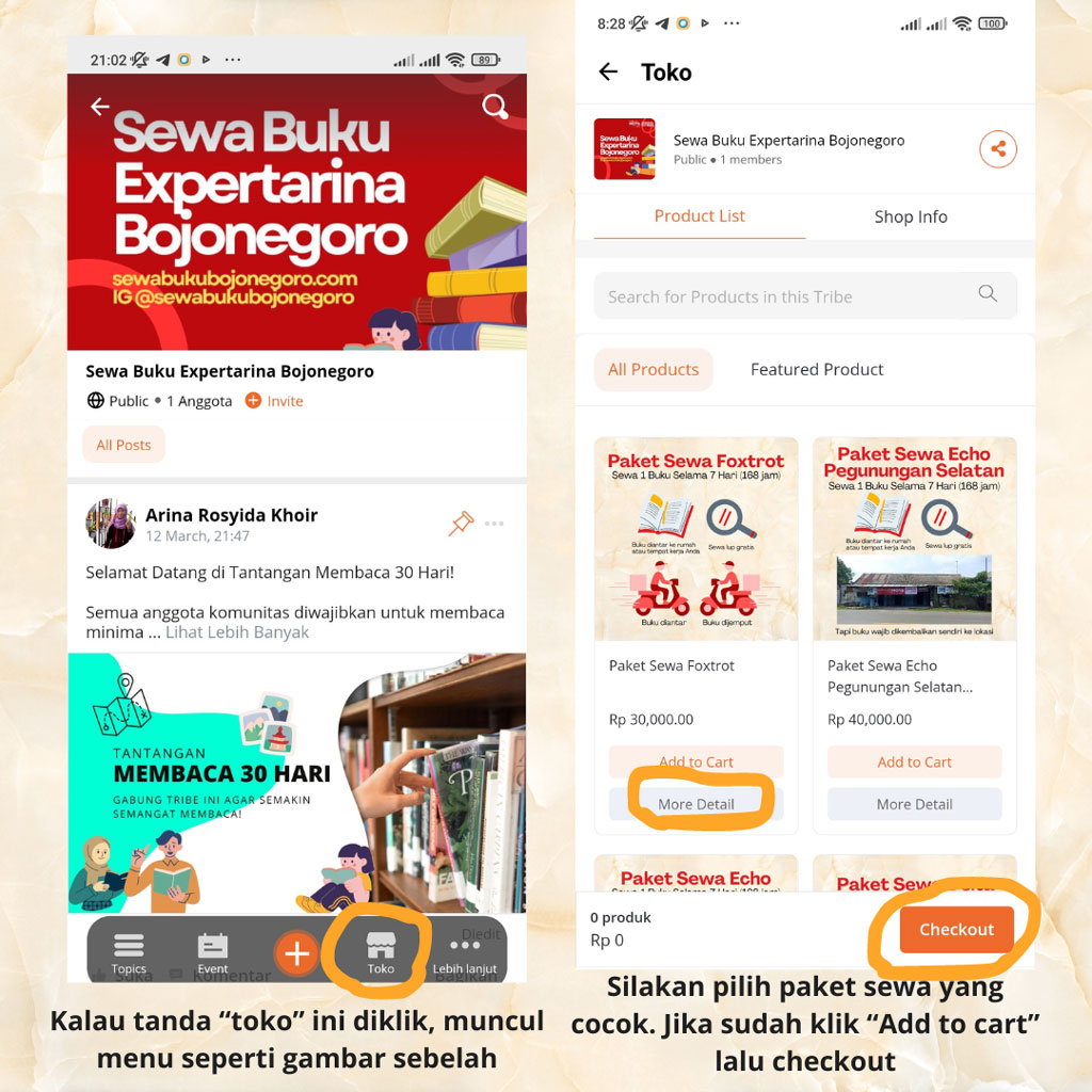 Cara Belanja di Sewa Buku Expertarina Bojonegoro