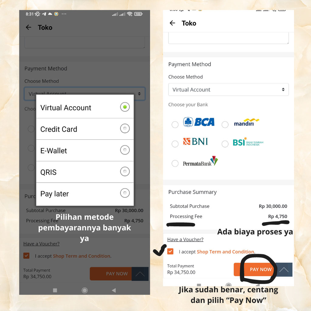 - Centang kotak disamping “I accept shop Term and Conditions”